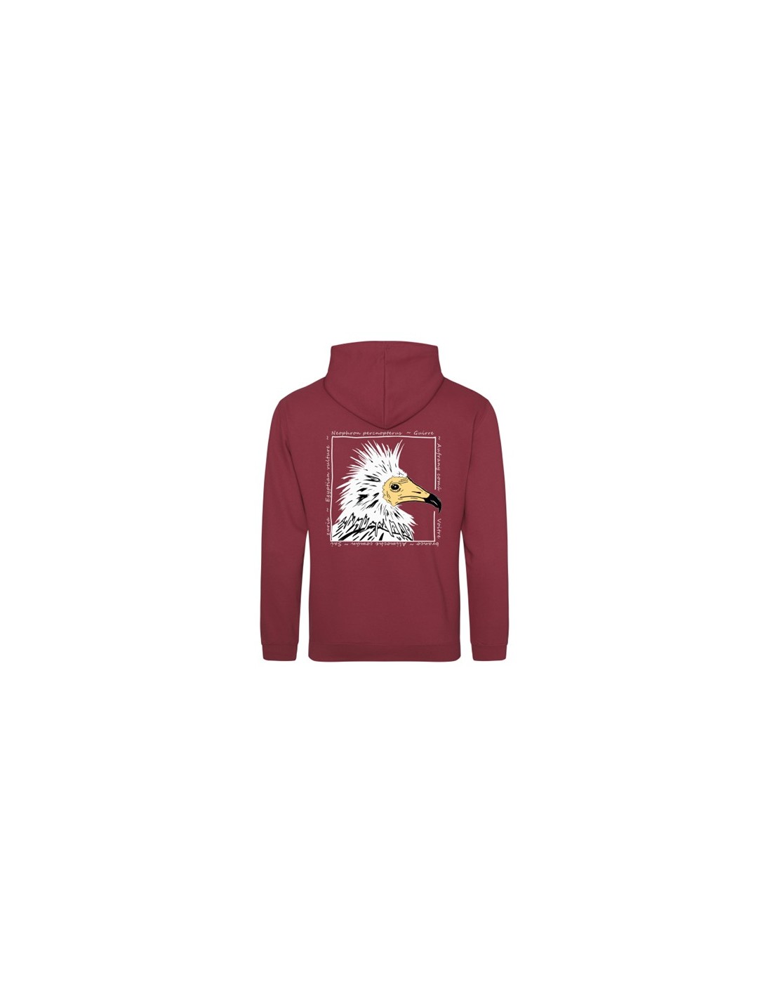 Sudadera de corte unisex tipo "hoodie" con capucha y bolsillo de canguro con el logotipo de GREFA en el pecho y el diseño del alimoche en la espalda. Escoge tu color favorito y !afronta el invierno salvaje!